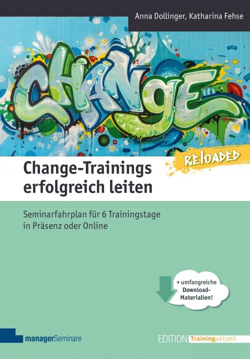 Wir befindet uns allgegenwärtig in Veränderungsprozessen. Für die erfolgreiche Umsetzung von Trainings zum Thema Veränderungsmanagement entwickelten Anna Dollinger und Katharina Fehse einen Seminarfahrplan, welcher Ihnen in dem Buch „Change-Trainings erfolgreich leiten - Reloaded: Seminarfahrplan für 6 Trainingstage in Präsenz oder Online“ (2022) dargelegt wird.