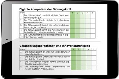 Werden Sie selbst zum Teilnehmer! Nutzen Sie dieses Tool Fragebogen Digital Leadership, um Ihre Digital Leadership-Kompetenzen zu reflektieren und erhalten Sie wertvolle Erkenntnisse über Ihre Stärken und Potenziale im digitalen Führungsumfeld.