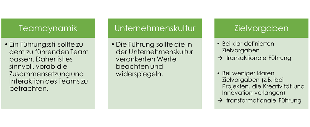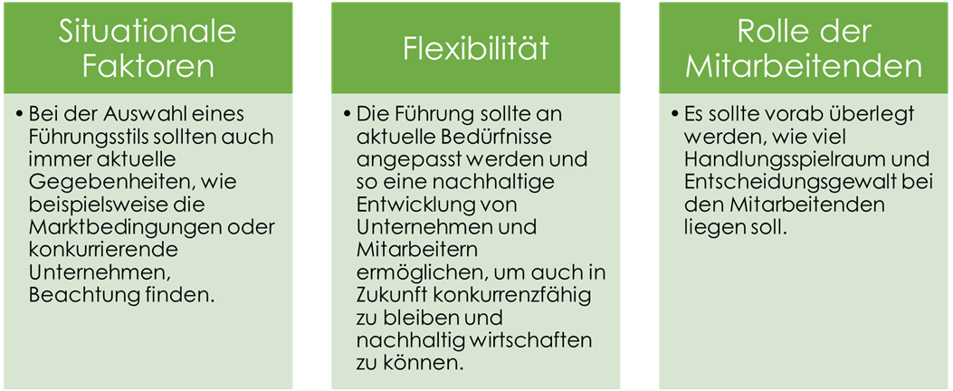 Es gibt keinen „besten“ Führungsstil, weshalb Führungskräfte je nach Situation auch Elemente verschiedener Stile kombinieren sollten, um angemessen auf Herausforderungen reagieren zu können.
