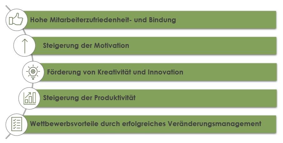 Ein weiterer erfolgversprechender Ansatz in der modernen Führung ist die transformationale Führung, bei der Teammitglieder mithilfe einer Vision motiviert werden und individuelle Beachtung und Förderung erfahren. Führungskräfte erhöhen dabei zwar auch die Bedeutung von Zielen und Aufgaben, vermitteln jedoch auch neue Perspektiven und ermöglichen ihren Teammitgliedern eine individualisierte Behandlung. So werden Mitarbeitende motiviert und inspiriert, während gegenseitiges Vertrauen die Grundlage der Zusammenarbeit von Führungskraft und Angestellten bildet.