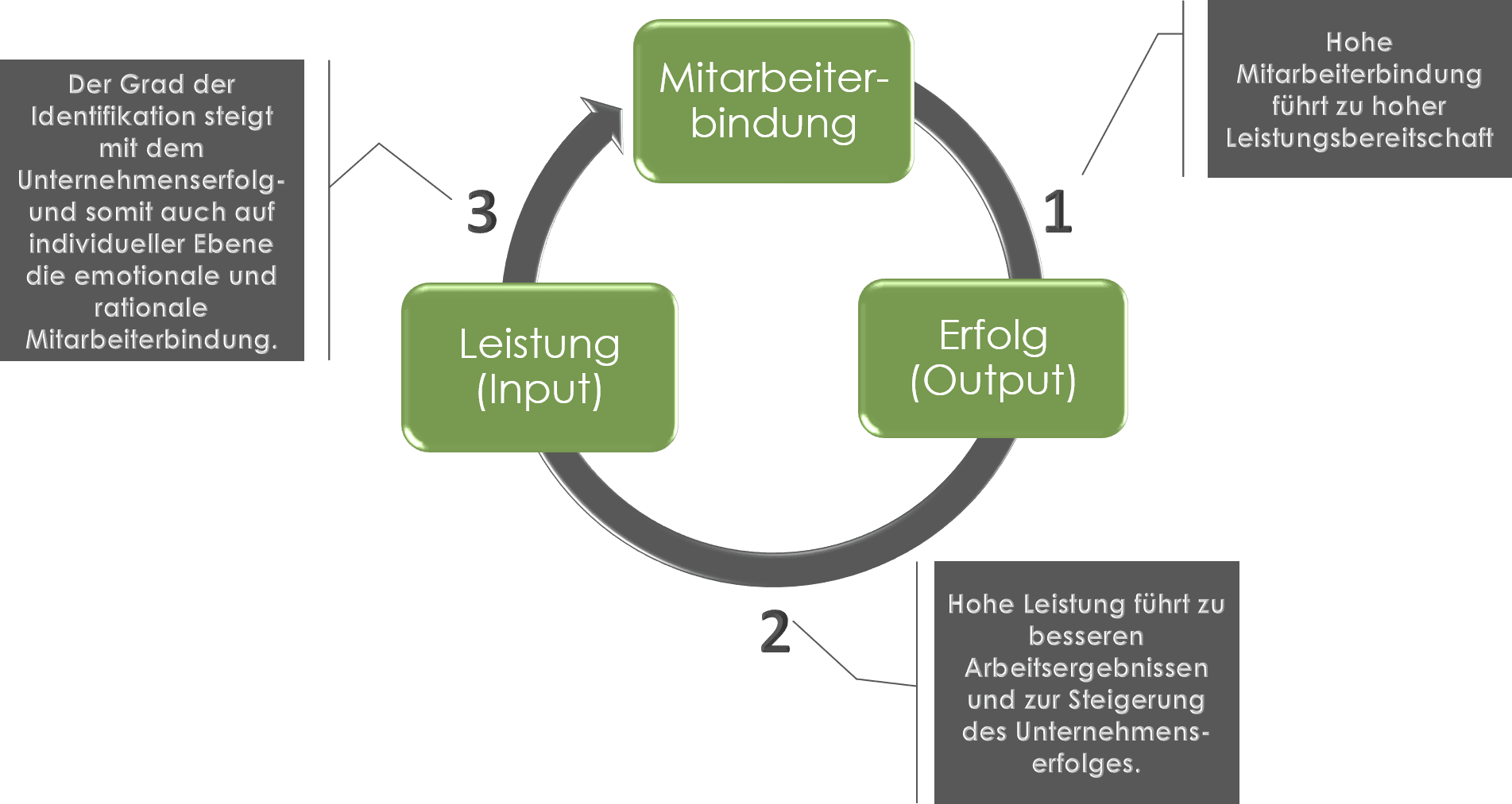 Mitarbeiterbindung setzt sich aus drei wesentlichen Faktoren zusammen: Interessen, Fähigkeiten und Wertvorstellungen. Die Erfüllung der genannten Faktoren erhöht sowohl die Zufriedenheit und somit die Produktivität der Mitarbeiter und Mitarbeiterinnen, als auch die Mitarbeiterbindung. Dies hat Auswirkungen auf die Ziele und die Unternehmenserfolge.