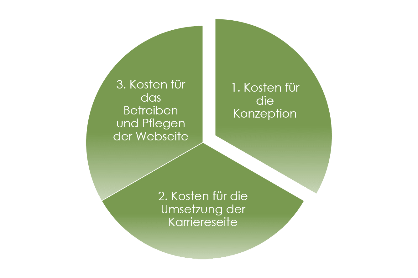 Grundsätzlich können die Kosten und die zeitlichen Ressourcen für eine Karrierewebseite gegliedert werden in: