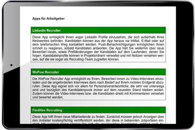 Automatische Versendung von Informationen: Bestimmte Apps ermöglichen den Bewerbenden das Abonnement von bzw. die automatische Benachrichtigung über neue, offene Stellen. Mittels dieser Funktion können Personalverantwortliche Jobsuchenden automatisch Informationen über neu veröffentlichte Stellen zusenden.