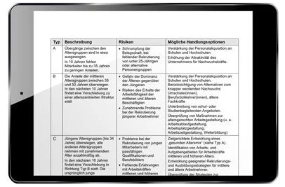 Aus den Ergebnissen des Altersstrukturchecks und einer darauf aufbauenden differenzierten Alterstrukturanalyse, lassen sich verschiedene Szenarien entwickeln, um auf folgende Risiken frühzeitig zu reagieren: