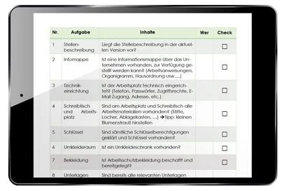 Nutzen Sie das Tool „Checklisten erster Arbeitstag“, um: