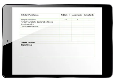 - mögliche Anbieter miteinander zu vergleichen.