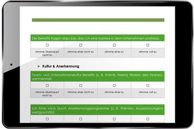 Nutzen Sie das Tool "Mitarbeiterbefragung als Benefit-Booster", um