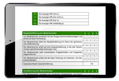 - verschiedene Moderierende miteinander zu vergleichen (beispielsweise bei der Entscheidung für externe Anbieter),