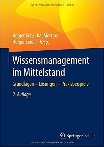 Verschiedene Beispiele von Holger Kohl, Kai Mertins und Holger Seidel zeigen Ihnen, wie Sie mit überschaubarem Aufwand, in Ihrem Unternehmen Wissensmanagement einführen können und so Ihren Produktionsfaktor zukünftg besser nutzen. Lesen Sie dazu in "Wissensmanagement im Mittelstand: Grundlagen - Lösungen - Praxisbeispiele" (2016) weitere Ideen und Hinweise für die Einführung und Gestaltung eines Wissensmangements nach.